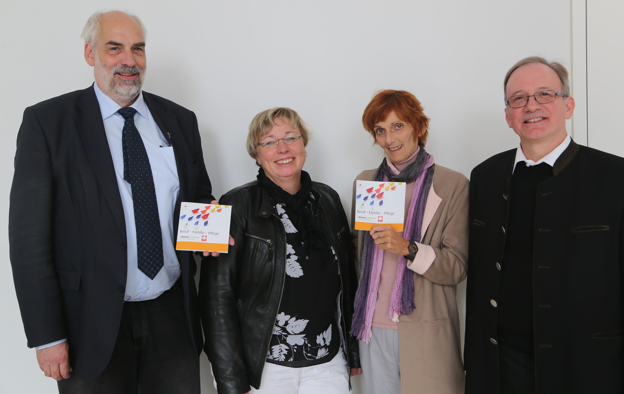 Im Rahmen dieses Projekts stellten Generalvikar Thomas Keßler, Domkapitular Christoph Warmuth, stellvertretender Leiter der Hauptabteilung Seelsorge, Martina Höß, Gleichstellungsbeauftragte und Referentin für das Projekt „audit berufundfamilie“, sowie Dorothea Weitz, Vorsitzende der Mitarbeitervertretung (MAV) der Diözese Würzburg, am Montag, 10. Oktober, die Broschüre „Beruf-Familie-Pflege“ im Burkardushaus in Würzburg vor. Diese fasst zusammen, welche Maßnahmen die Diözese als Arbeitgeber ergreift, um für die Mitarbeiter die Balance zwischen Beruf und Familie zu erleichtern.
