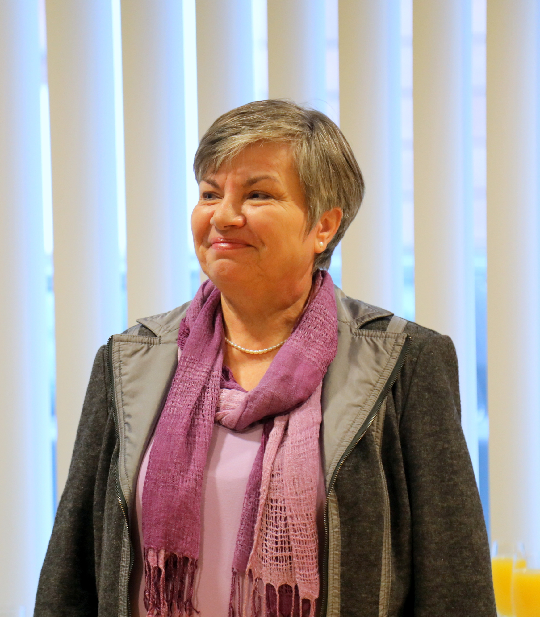 „Heute ist wirklich ein Tag der Wehmut, aber auch eine Zeit der Freude und Dankbarkeit“, sagte Professor Dr. Johannes Merz, Kanzler der Kurie. Milles habe sich dem Diözesanarchiv immer verantwortlich gefühlt. Durch ihr kritisches und gleichzeitig besänftigendes Wesen habe sie ihren eigenen Stil gefunden und Dinge in die Hand genommen. „Ihre manchmal fordernde Art ist immer der Sache selbst gewidmet.“ Ebenfalls sei Bescheidenheit typisch für Milles. „Wir nennen sie auch ‚Die Mutter des Archivs‘, denn ihre Lösungen sind nie technisch, sondern menschlich.“ Milles habe das Archiv in ihrer besonderen Art geprägt. Mit ihrem Weggang „geht eine Ära zu Ende“, sagte Katrin Schwarz, Leiterin von Archiv und Bibliothek des Bistums Würzburg. „Wir werden Dich sehr vermissen. Wir hoffen, dass Du Dein Versprechen wahr machst und uns regelmäßig besuchst“, sagte Schwarz. Dorothea Weitz, Vorsitzende der Mitarbeitervertretung (MAV) der Diözese Würzburg, würdigte ebenfalls Milles‘ Engagement. „Ich gehöre zu denen, die von klaren Ansagen und Worten sehr viel halten.“ Es sei wichtig, sich immer wieder neuen Herausforderungen zu stellen und Flexibilität zu bewahren. In diesem Sinne wünschte Weitz Milles Zeit zum Entschleunigen und überreichte ihr zum Abschied einen Fastenkalender und ein Genießerpaket für die Tee- und Kaffeeliebhaberin. Zum Schluss wünschten die Archivangestellten Matthias Habermann und Horst Hartlieb ihrer Kollegin alles Gute. „Ich gehe mit einem lachenden und einem weinenden Auge“, sagte Milles. Sie habe nicht damit gerechnet, so viel Lob zu erhalten. Der Abschied falle ihr nicht leicht, trotzdem freue sie sich auch auf das, was in der Zukunft liege.