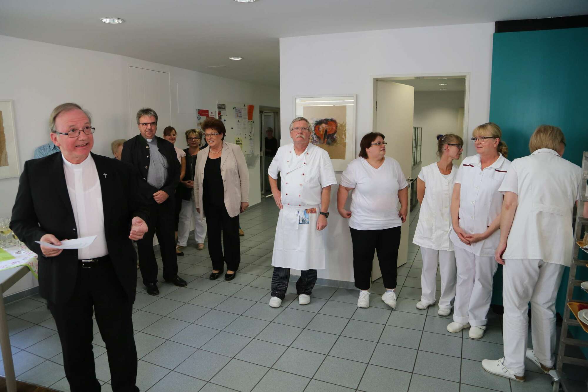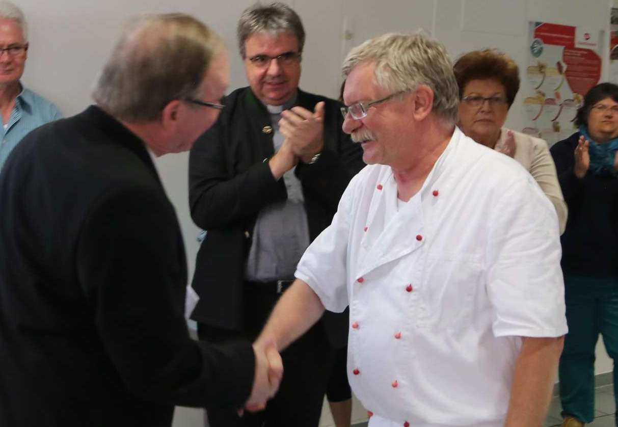 Im Namen der Mitarbeitervertretung (MAV) sprach Dr. Jürgen Emmert dem Kantinenteam Dank aus. Er zeigte sich erfreut, dass trotz der bevorstehenden räumlichen Veränderung niemand betriebsbedingt gekündigt werden musste. 1974 hatte das Bischöfliche Ordinariat Würzburg die Kantine in der ehemaligen „Main-Post“ übernommen. 1980 wurde Willy Karl dort Chefkoch. Ab 1984 wurde von dort aus auch das Vinzentinum mit Essen beliefert. Wegen Umbaus des Echter-Verlags und der Caritas wurde die Kantine 1994 ins Kilianeum verlagert. Seit 1996 hatte sie ihren Standort im Caritashaus in der Franziskanergasse.