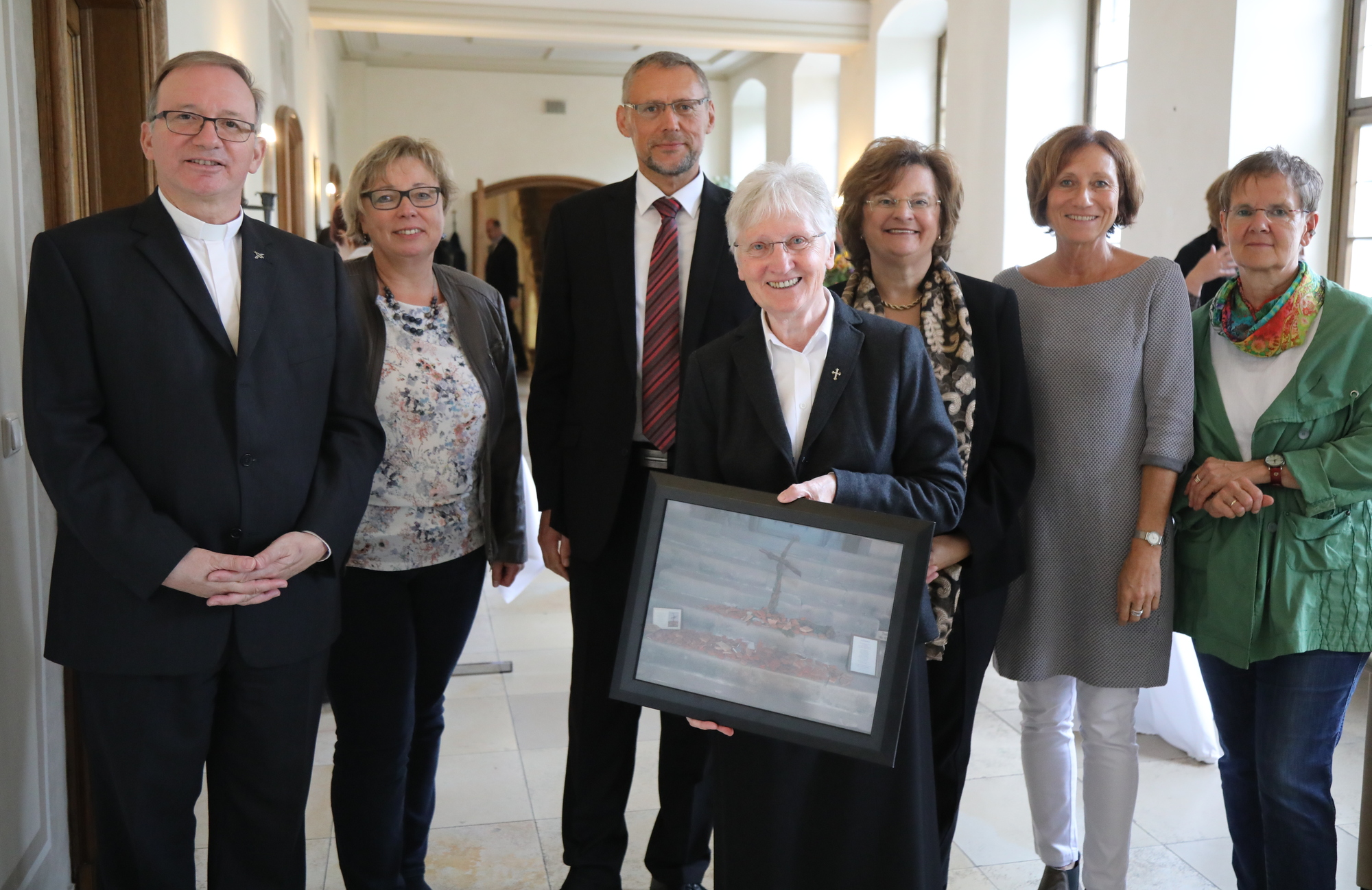 „Ich habe mich in meiner Tätigkeit als Präventionsbeauftragte auch dem dominikanischen Prinzip der Wahrheit verpflichtet gewusst“, betonte Fasel. Papst Gregor der Große habe schon betont, es sei besser, dass es zu einer Auseinandersetzung komme, als dass die Wahrheit zu kurz komme. „Ich appelliere daher an alle, das Thema Prävention weiter hoch zu halten.“ Zugleich dankte sie allen, die sie in den vergangenen Jahren „beschenkt, bereichert und gut begleitet“ hätten. Sie sei fest überzeugt, dass das Thema bei Pfriem in guten Händen sei, zumal es durch diesen noch näher am Generalvikar angesiedelt sei. Pfriem sei aufgrund seiner Pädagogik- und Psychologiekenntnisse fachlich bestens qualifiziert und aufgrund seiner Verantwortung für die diözesane Bearbeitung der Missbrauchsstudie der Deutschen Bischofskonferenz bereits mit dem Thema vertraut. Pfriem schenkte seiner Vorgängerin ein gerahmtes Foto. Es symbolisiere für ihn den spirituellen Hintergrund, auf dem er diese herausfordernde Aufgabe übernehme. Zu sehen ist auf dem Bild ein Kreuz, das auf Scherben fußt. „Für mich verdeutlicht diese Darstellung die Überzeugung, dass durch Jesus und sein Erlösungswirken am Kreuz auch die Scherben im menschlichen Leben einen neuen Sinn bekommen.“